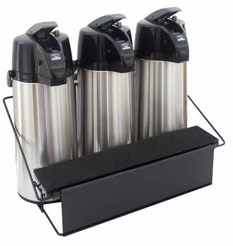 3 station airpot rack, drip trays, shown w/ AASB-22SB airpot. Helps keep multiple airpots organized and easily accessible.