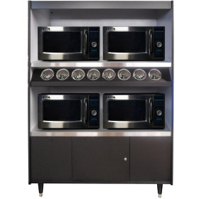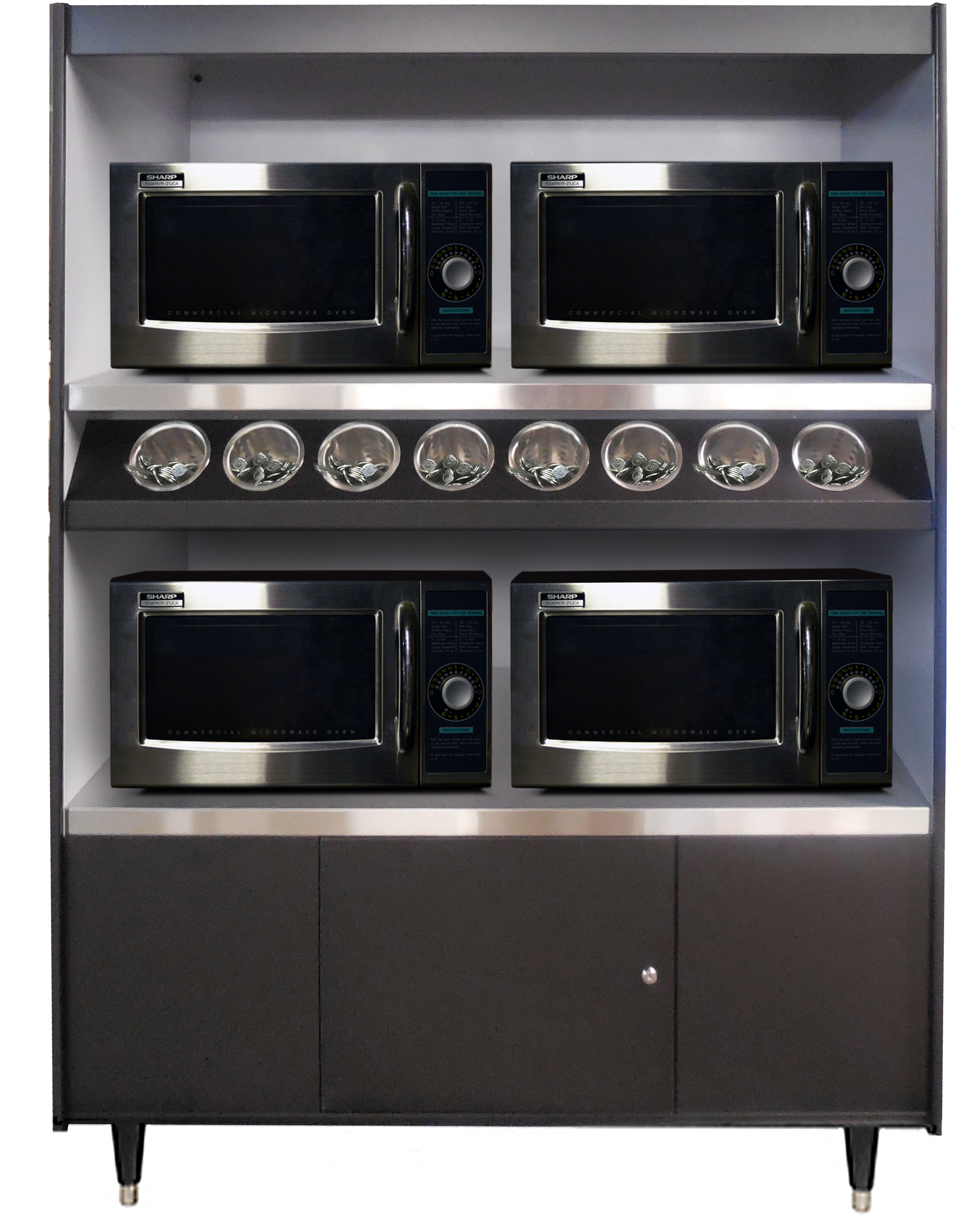 Lighted Unit feature 20-amp receptacles and can accommodate up to 4 microwaves. Includes 8 stainless steel condiment cups.
