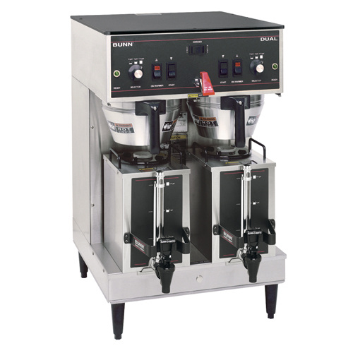 The Bunn Dual Brewer can brew up to 18.9 gallons of coffee per hour. Three preset timed cycles allow you to brew in 0.5, 1, or 1.5 gallon batches to help control portion size.