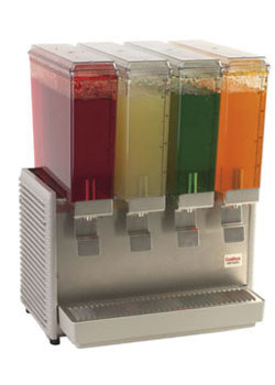 This four bowl premix cold beverage dispenser is as easy to clean as any in the industry! With fewer parts for a fast, easy cleanup and a stainless steel surface that is easy to cleanse, this dispenser makes it easier than ever to give your fruit juice, iced tea, and iced coffee the exposure they deserve.
