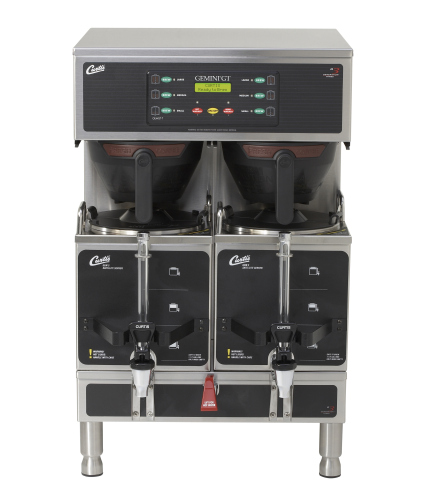 Curtis G3 technology combines precision brewing capability with an easy-to-use interface. All brewing functions are displayed in real time, not a coded system of indicators. Curtis Gemini® systems are factory set for out-of-the box operation with pre-programmed recipes that ensures a consistent brew, every time. And, with scroll-through menus it's just as easy to fine-tune the brewing process for your exacting gourmet coffee profile. Gemini Satellite Brewer System - Twin - 12,24,36 Cup - 1,2,3 Batch Selectable, 3PH w/ Transformer.
