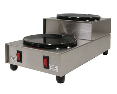 Stainless steel warmer with black plates. Features a space saving design and attractive appearance styled to complement any decor. Expand your brewing center by combining multiple warmers with your brewers.