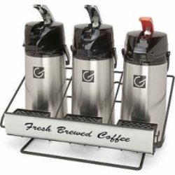 This rack is great for serving coffee at any business or social event. It includes (3) 2.2 Liter lever top airpots, and can be combined with other racks to make larger setups for a bigger selection of coffee.