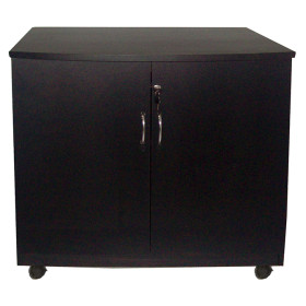 Holiday House's black coffee brewer cabinet features a spacious top and interior, and casters for convenient mobility. Please note that assembly is required.