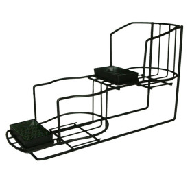 Keep your coffee area clean and organized with an airpot rack from Holiday House. An airpot rack is a great way to insure airpots will be returned to their proper place after use. The inline style helps merchandise your drinks by raising pots in the back row up where customers can see them. Great for use behind the counter or at a self serve table. Includes drip trays to keep rack and counter clean. This inline rack holds two airpots.