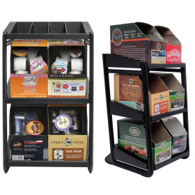 Keurig Pod 6 Selection Rack is guaranteed not to crack, break, shatter or loosen up. Will not drag off counter, No missing pieces, Made of Harden plastic. Accommodates 6 boxes or 4 boxes and condiment tray. Includes New Back Stiffener