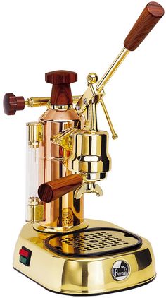 A stunning combination of gold/copper finish and wood accents makes a bold statement reminiscent of old-world coffee shops. The level coffee delivery allows for precise extractions. Two frothing systems are standard, you can frot hadn steam milk by using the plated steam wand or the cappuccino automatic attachment.