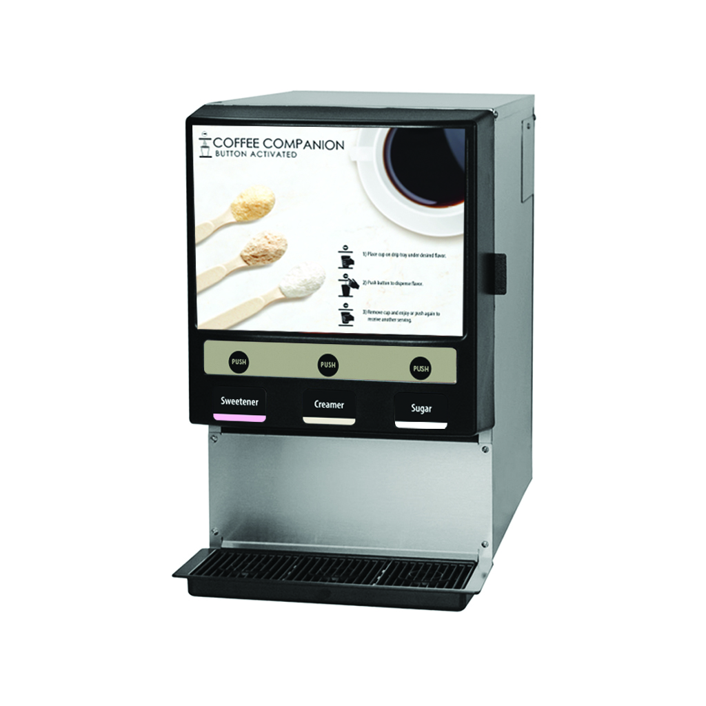 Love coffee, just not straight black? Well now you can add your favorite sweetener or creamer with the touch of a button. Newco's Coffee Companion Dispenser fits next to your coffee brewer, creating a flavor station. This allows your customers to flavor their coffee with a wide variety of sweeteners including but not limited to cream and sugar with simple one-button operation.