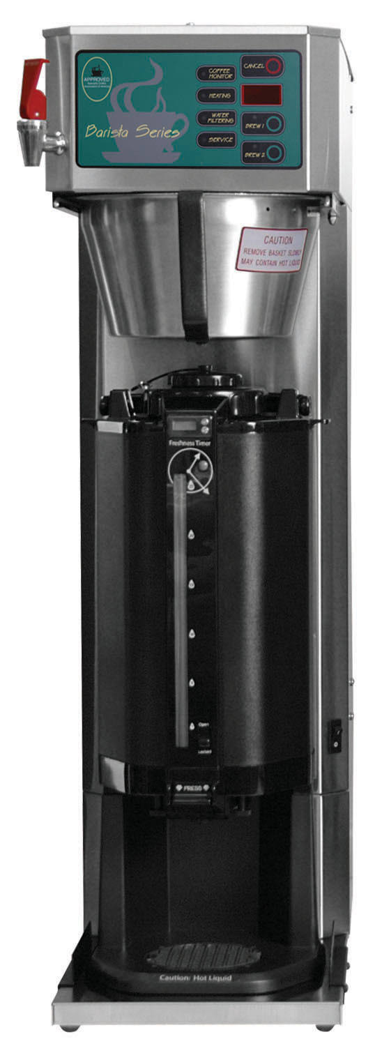 Newco Commercial Barista series Digital Automatic with Faucet Brewers for High Volume Applications. Commercial Barista brewing systems use the same technology as the Cafe Barista Series, however, they are most useful when brewing larger volumes of coffee. The Commercial Barista opens up a new world of flavor profile control by allowing you to select two different settings and you can brew into two different size dispensers and/or two different strengths with the same machine. SCAA approved brewer and SCAA certified to serve Gold Cup standard Coffee.