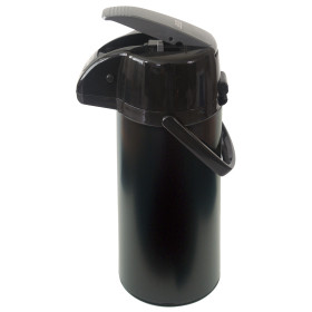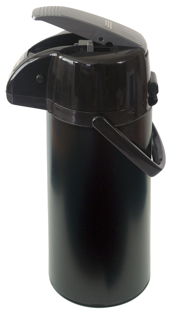The NewTech AASB-22B/B Airpot can hold up to 2.2 Liters. Your beverages will stay hot for hours with the vacuum glass lining of the AASB-22B/B Airpot. The lever action style lid makes this coffee server easy to use. This airpot comes in matte black finish.