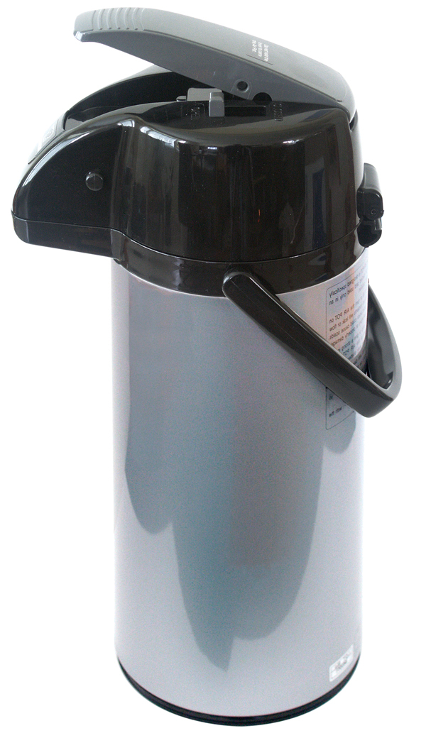 The NewTech AASB-22B Airpot can hold up to 2.2 Liters. Your beverages will stay hot for hours with the vacuum glass lining of the AASB-22B Airpot. The lever action style lid makes this coffee server easy to use. This airpot comes in a silver metal finish.