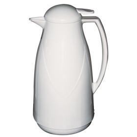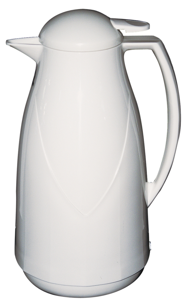 The NewTech AG-KB10WH coffee server holds 1.0 liters and is vacuum glass lined to keep liquids warm. This decanter has a durable high impact plastic body. The one hand operation lid allows for easy pouring. Comes in white and black.