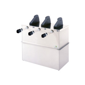 - Construction: Brushed finish stainless steel base and lid, surgical-quality plastic pumps and black polypropylene levers.
