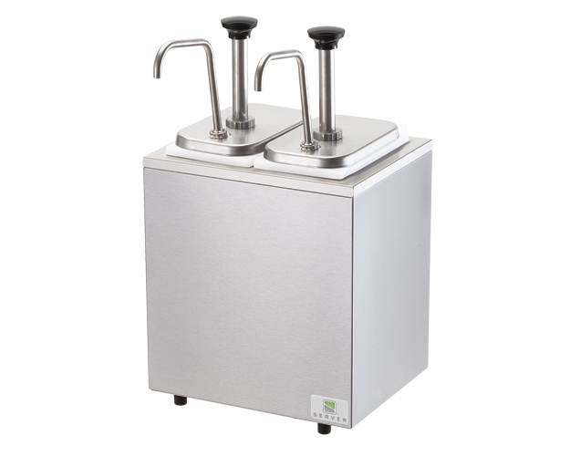 This insulated bar combo features stainless steel pumps that can dispense thick products with particulates, which typically require chilling. This model includes two stainless steel pumps 83330 and deep plastic fountain jars 82557. The brushed finish base reduces the visibility of fingerprints and may be cooled with one Eutectic Ice Pack per jar, HOLDCOLD Jars or ice. Ice packs and HOLDCOLD jars are sold separately