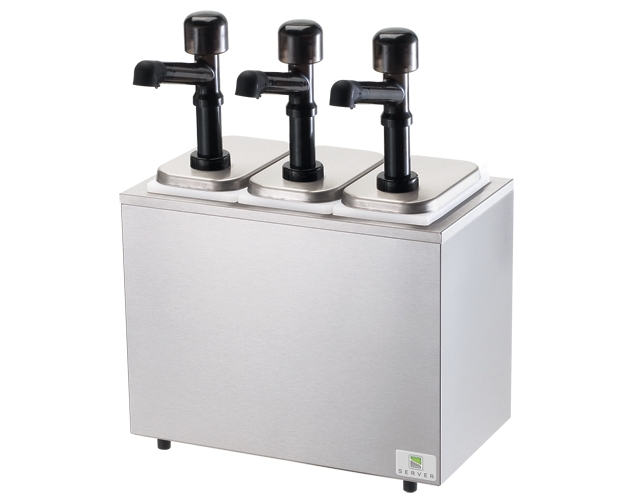 - Dispense a wide range of cold products from syrups to relish by selecting (1) of the (3) discharge fittings included (3) Deep plastic fountain jars