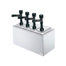 - Pumps have 3 discharge fittings for thick to thin condiments