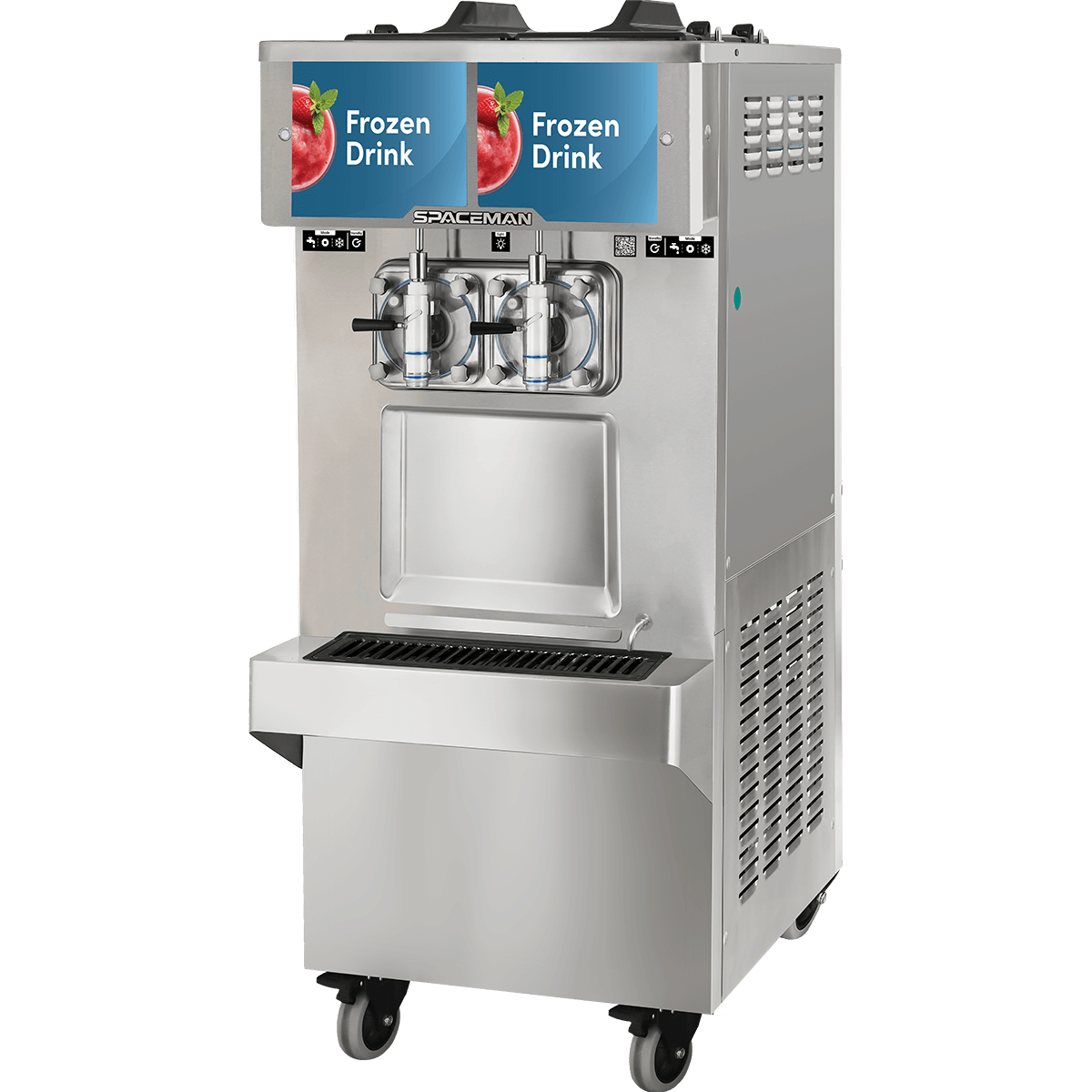 Spaceman’s patented freeze technology combined with the all new V2 beater/blade system means easy cleaning and the best product consistency available. The Spaceman V2 system scrapes the cylinder walls with precision, resulting in smaller ice crystals. The design ensures smooth icy cold product sure to tantalize and please your senses! The new C overhead design allows you to switch products and hardness levels in under 30 seconds. Multi-unit operators can choose a 1-6 setting based on product and control consistency easily across locations.