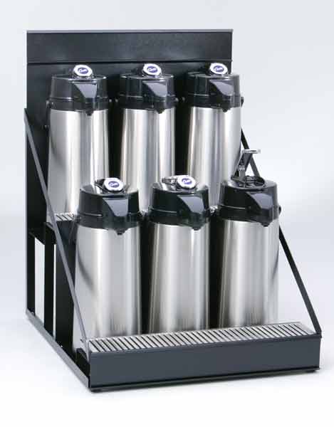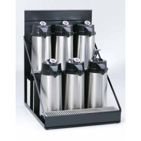 Add Curtis’ Airpot Racks to your airpot program and quickly create remote coffee service centers. Compact design with integral drip tray holder and 3" high merchandising channel. Available in capacities for any service application.